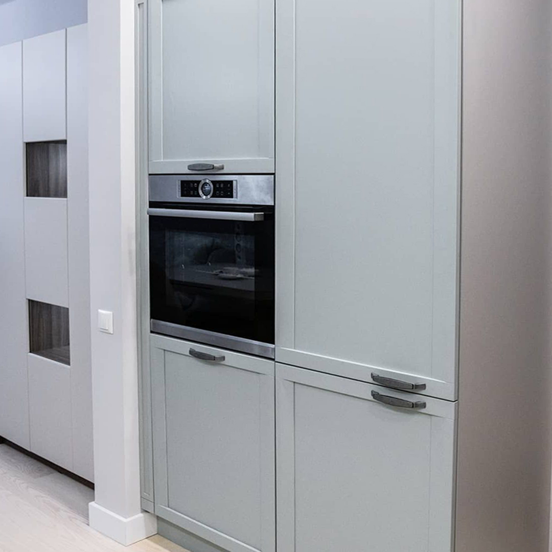 Если вы не хотите терять драгоценное пространство за стандартной фальш-панелью, поставьте карго — пользоваться кухней будет намного удобнее. Доставать масло или специи из такой корзины в разы удобнее, чем пытаться найти необходимое на полках узкого шкафчика. Выкатные ящики полного выдвижения - один из самых удобных и рациональных способов доступа, т.к. позволяет по максимум использовать пространство шкафчика, с простым доступом к любому предмету.