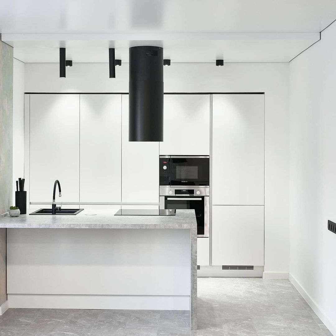 Можно сказать, что рабочая зона на кухне занимает всю её площадь. Отчасти это так, но у каждой зоны свои задачи — мытье продуктов и посуды, хранение, подготовка, приготовление. И если от варочной поверхности или классических шкафов в отдельных кухнях можно отказаться, то пустая столешница для нарезки и других манипуляций нужна всем. Золотой стандарт: даже в самой крошечной кухне она не должна быть меньше 50 см шириной. Соблюдение этого расстояния гарантирует комфорт во время работы.