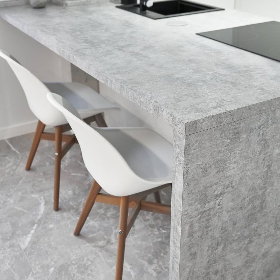 Скинали в цвет столешницы смотрится эстетично и гармонично не уступая по свойствам плитке.