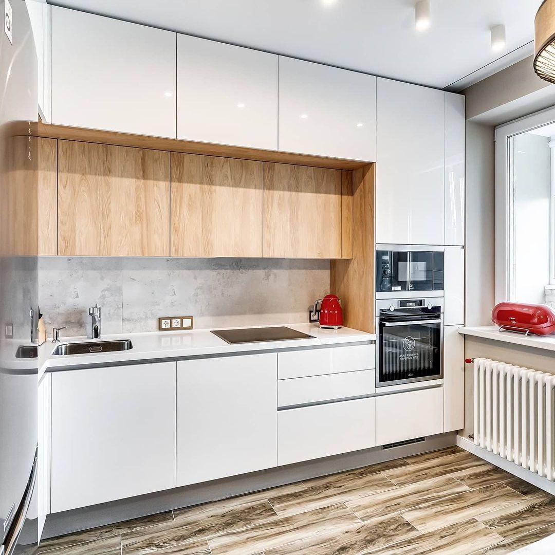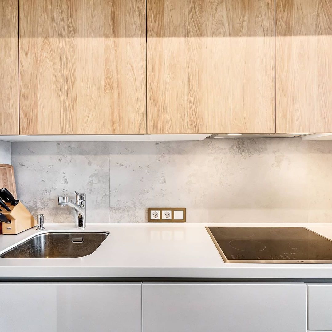 Можно сказать, что рабочая зона на кухне занимает всю её площадь. Отчасти это так, но у каждой зоны свои задачи — мытье продуктов и посуды, хранение, подготовка, приготовление. И если от варочной поверхности или классических шкафов в отдельных кухнях можно отказаться, то пустая столешница для нарезки и других манипуляций нужна всем. Золотой стандарт: даже в самой крошечной кухне она не должна быть меньше 50 см шириной. Соблюдение этого расстояния гарантирует комфорт во время работы.