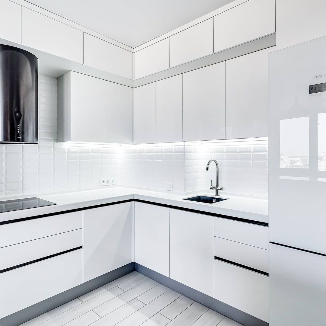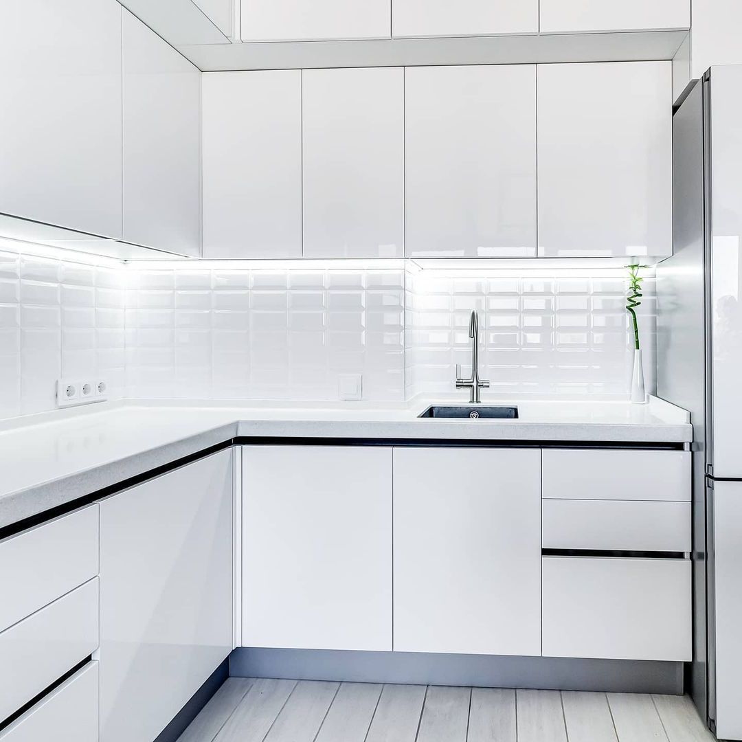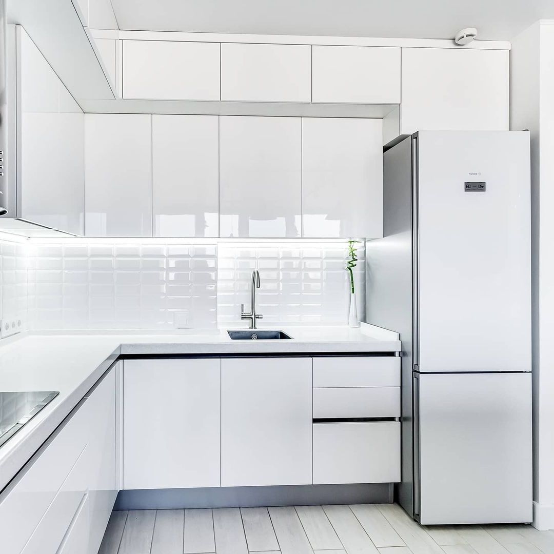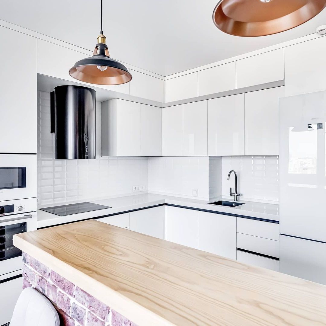 Можно сказать, что рабочая зона на кухне занимает всю её площадь. Отчасти это так, но у каждой зоны свои задачи — мытье продуктов и посуды, хранение, подготовка, приготовление. И если от варочной поверхности или классических шкафов в отдельных кухнях можно отказаться, то пустая столешница для нарезки и других манипуляций нужна всем. Золотой стандарт: даже в самой крошечной кухне она не должна быть меньше 50 см шириной. Соблюдение этого расстояния гарантирует комфорт во время работы.