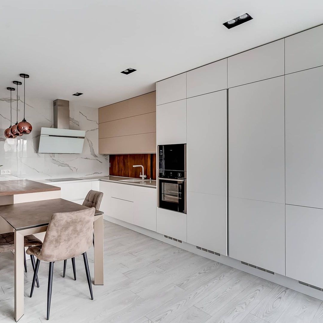 Можно сказать, что рабочая зона на кухне занимает всю её площадь. Отчасти это так, но у каждой зоны свои задачи — мытье продуктов и посуды, хранение, подготовка, приготовление. И если от варочной поверхности или классических шкафов в отдельных кухнях можно отказаться, то пустая столешница для нарезки и других манипуляций нужна всем. Золотой стандарт: даже в самой крошечной кухне она не должна быть меньше 50 см шириной. Соблюдение этого расстояния гарантирует комфорт во время работы.