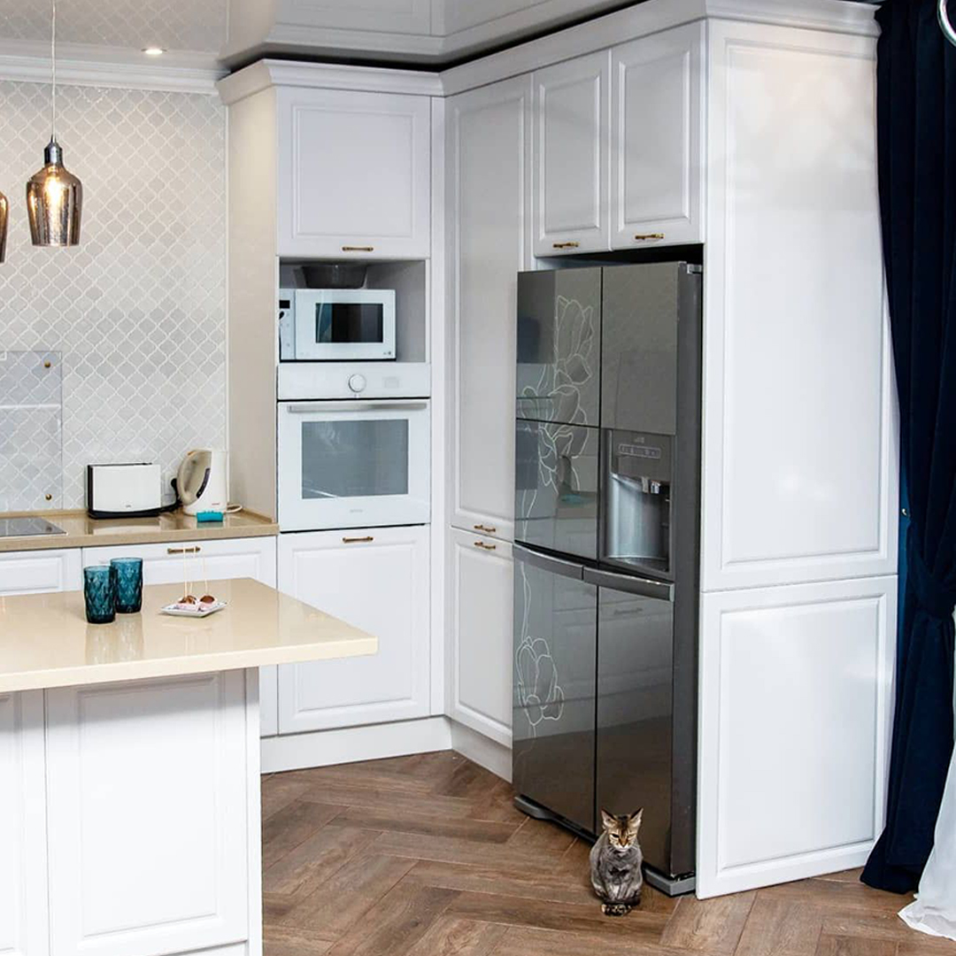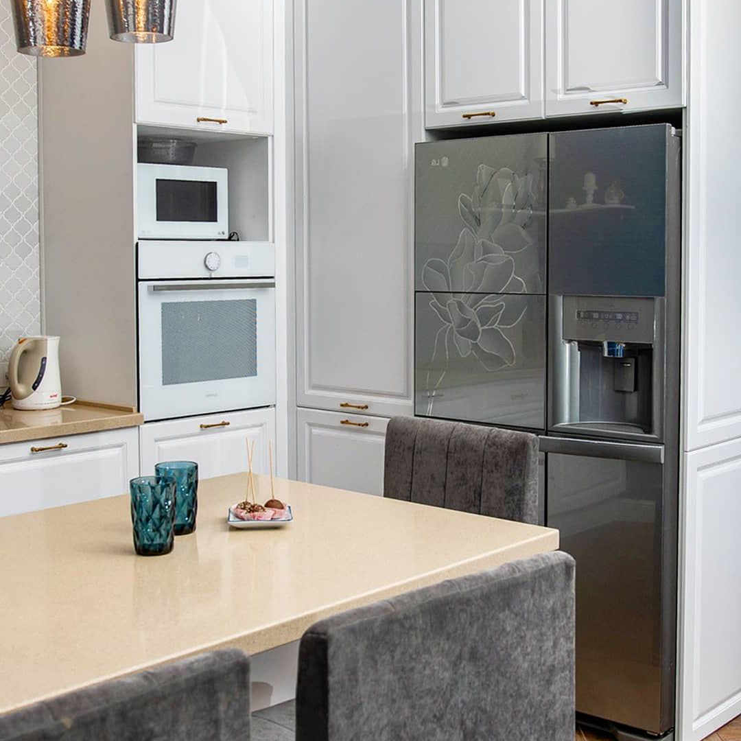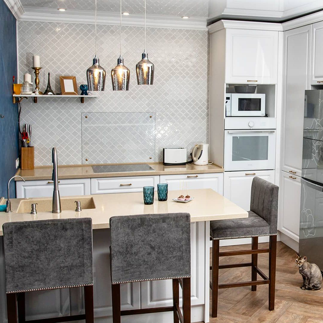 Можно сказать, что рабочая зона на кухне занимает всю её площадь. Отчасти это так, но у каждой зоны свои задачи — мытье продуктов и посуды, хранение, подготовка, приготовление. И если от варочной поверхности или классических шкафов в отдельных кухнях можно отказаться, то пустая столешница для нарезки и других манипуляций нужна всем. Золотой стандарт: даже в самой крошечной кухне она не должна быть меньше 50 см шириной. Соблюдение этого расстояния гарантирует комфорт во время работы.