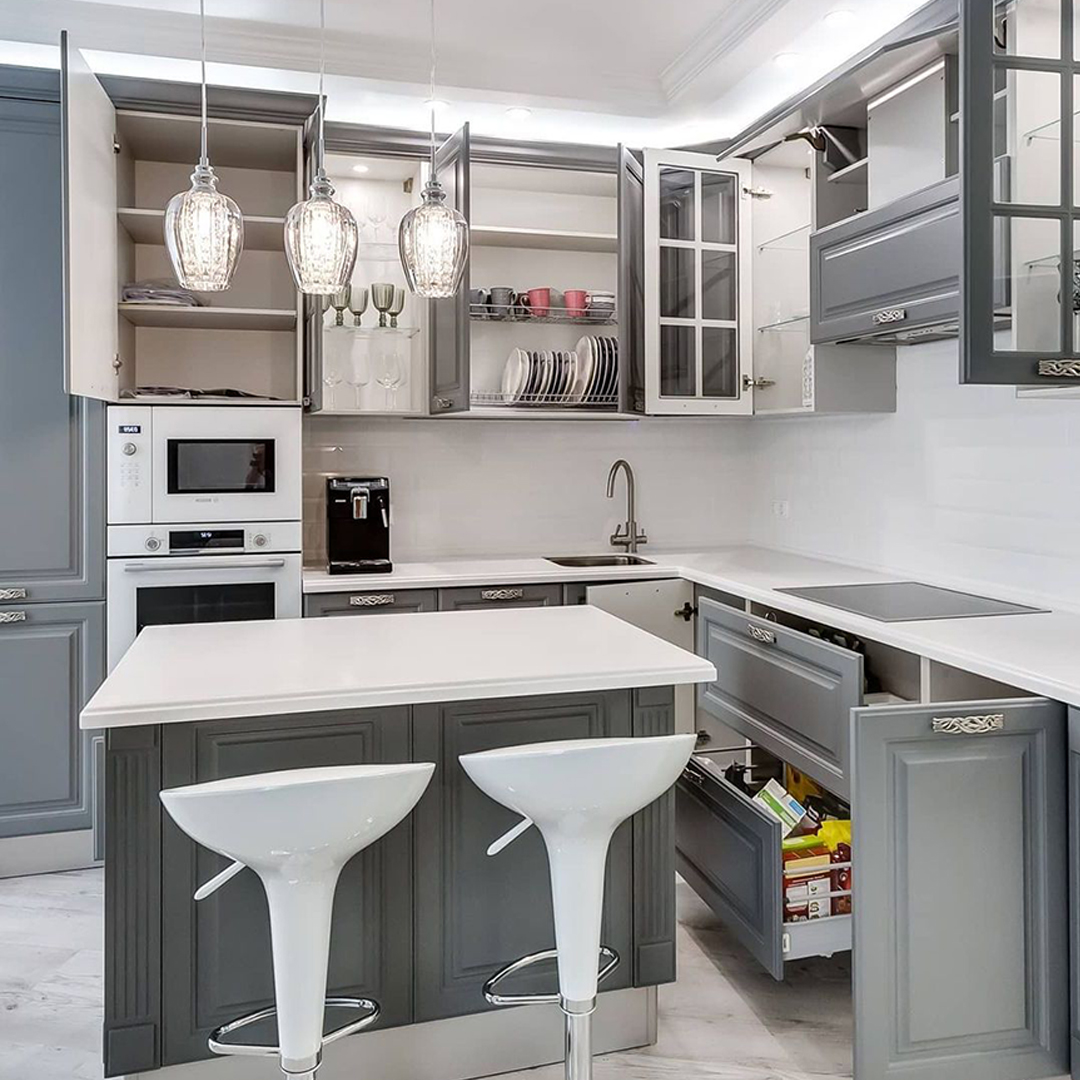 Можно сказать, что рабочая зона на кухне занимает всю её площадь. Отчасти это так, но у каждой зоны свои задачи — мытье продуктов и посуды, хранение, подготовка, приготовление. И если от варочной поверхности или классических шкафов в отдельных кухнях можно отказаться, то пустая столешница для нарезки и других манипуляций нужна всем. Золотой стандарт: даже в самой крошечной кухне она не должна быть меньше 50 см шириной. Соблюдение этого расстояния гарантирует комфорт во время работы.