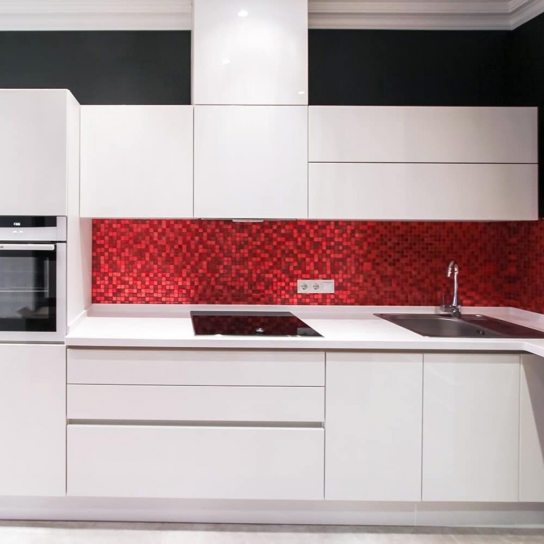 Скинали в цвет столешницы смотрится эстетично и гармонично не уступая по свойствам плитке.