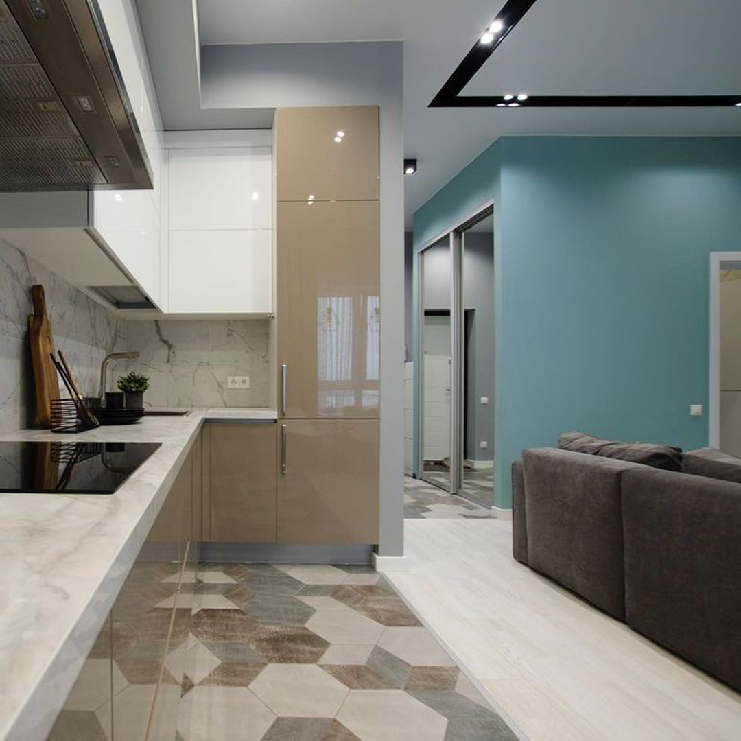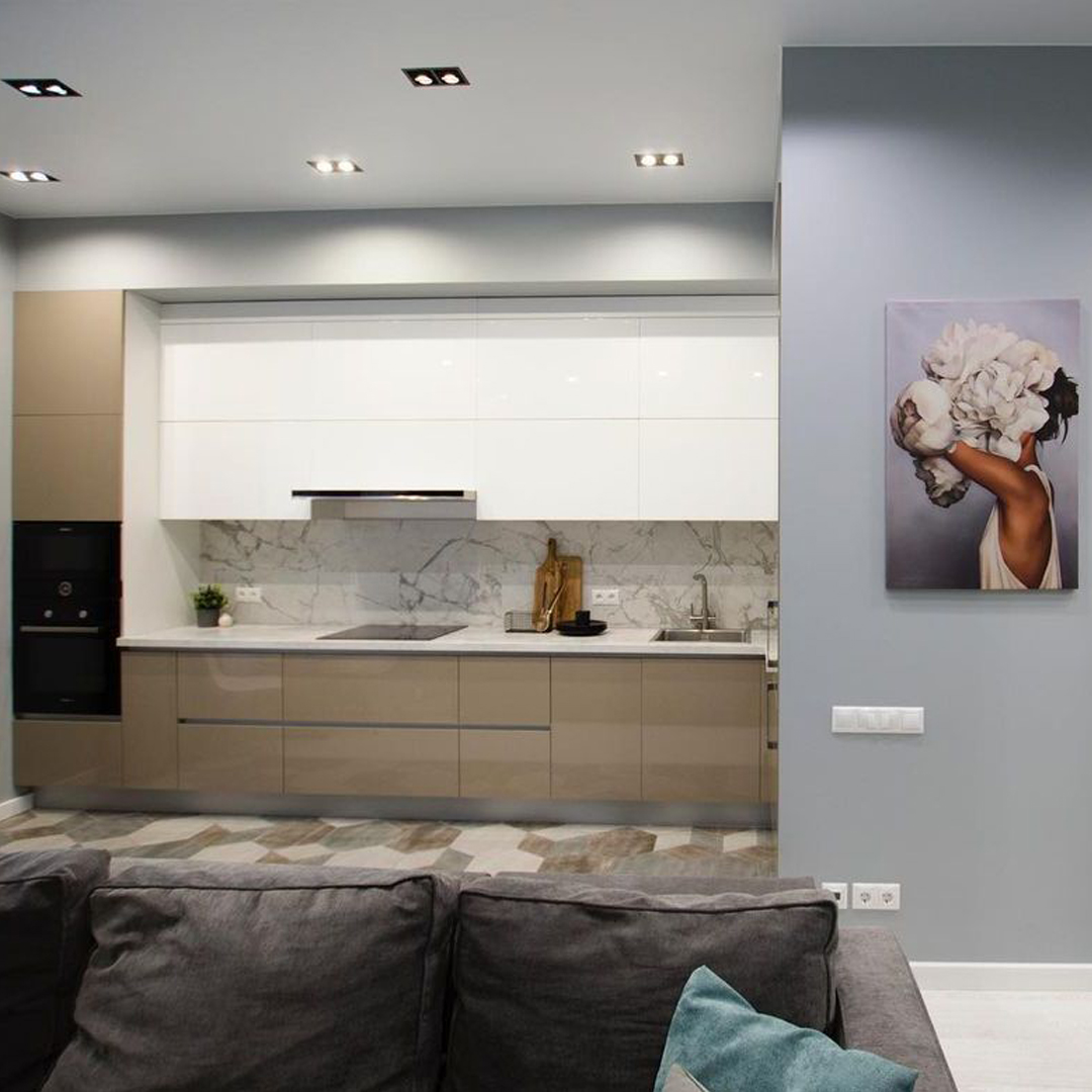 Можно сказать, что рабочая зона на кухне занимает всю её площадь. Отчасти это так, но у каждой зоны свои задачи — мытье продуктов и посуды, хранение, подготовка, приготовление. И если от варочной поверхности или классических шкафов в отдельных кухнях можно отказаться, то пустая столешница для нарезки и других манипуляций нужна всем. Золотой стандарт: даже в самой крошечной кухне она не должна быть меньше 50 см шириной. Соблюдение этого расстояния гарантирует комфорт во время работы.